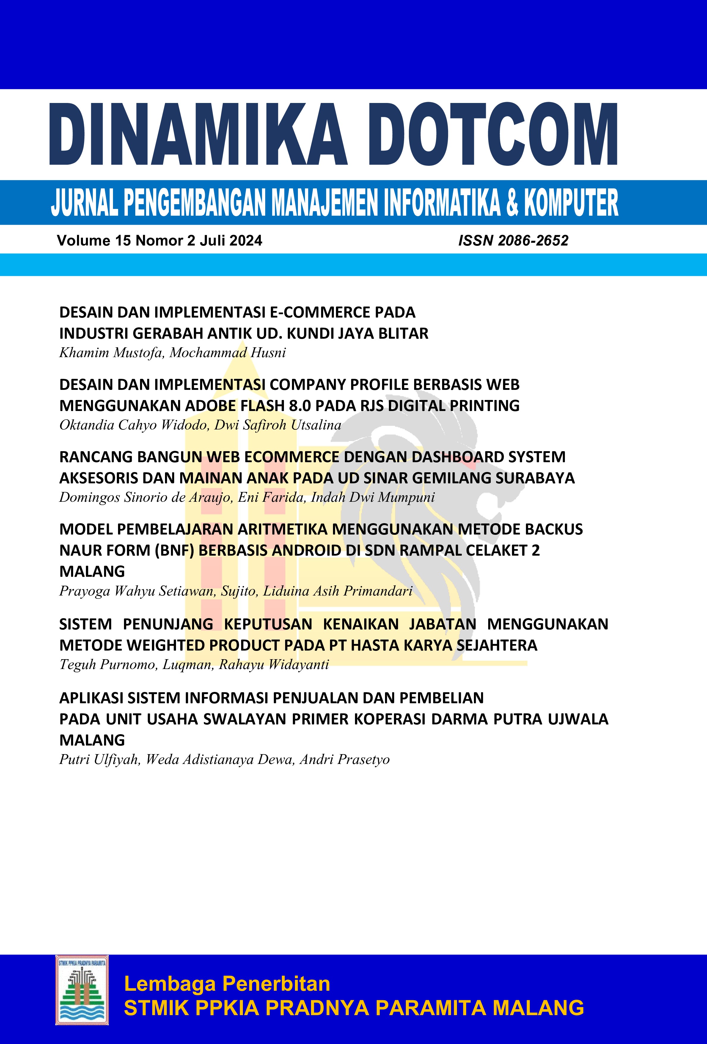 Primkop Darma Putra Ujwala is an extra weight of structural units that constitute the chain Pangkostrad Puskopad. Darma Putra Ujwala has two types, namely savings and loan business and self-service business unit. self-service business unit aims to support the welfare and provide facilities for providers of daily necessities to all Pangkostrad soldiers and their families. The purpose of this research is terbangunya information systems sales and purchases on the primary self-service business unit cooperative darma Ujwala son. The method applied in this study is developing a system Software Development Life Cycle (SDLC). The results of this study can be used to give information supplies inventory, facilitate service sales and purchases, making reports both buying and selling daily, monthly and yearly. In the sales report can be used to print the bill of sale in addition to the reports the bill in cash and debt. Tagian report will be taken into account to deduct the salary of each member.